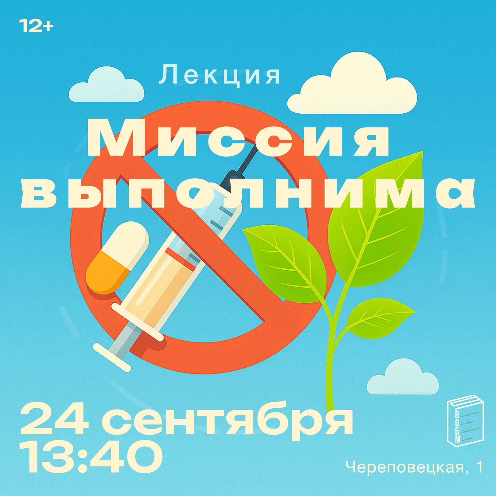 24 сентября в 13:40 в Волгоградской областной библиотеке для молодежи в рамках социального проекта «Наркотики: вычеркни лишнее» состоится лекция «Миссия выполнима» направленная на формирование здорового образа жизни, предупреждение и профилактику наркозависимости.