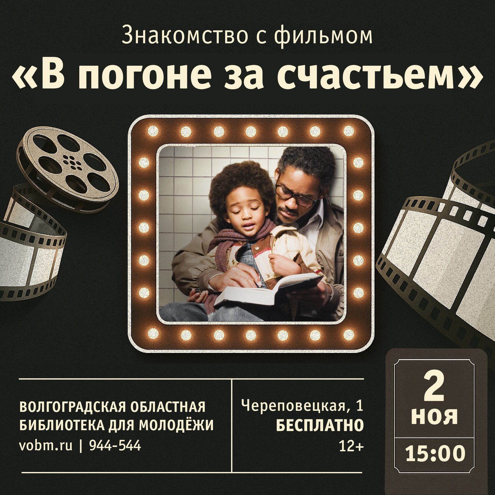2 ноября в 15:00 в Волгоградской областной библиотеке для молодежи рамках проекта Зеркало сцены состоится знакомство с фильмом «В погоне за счастьем».