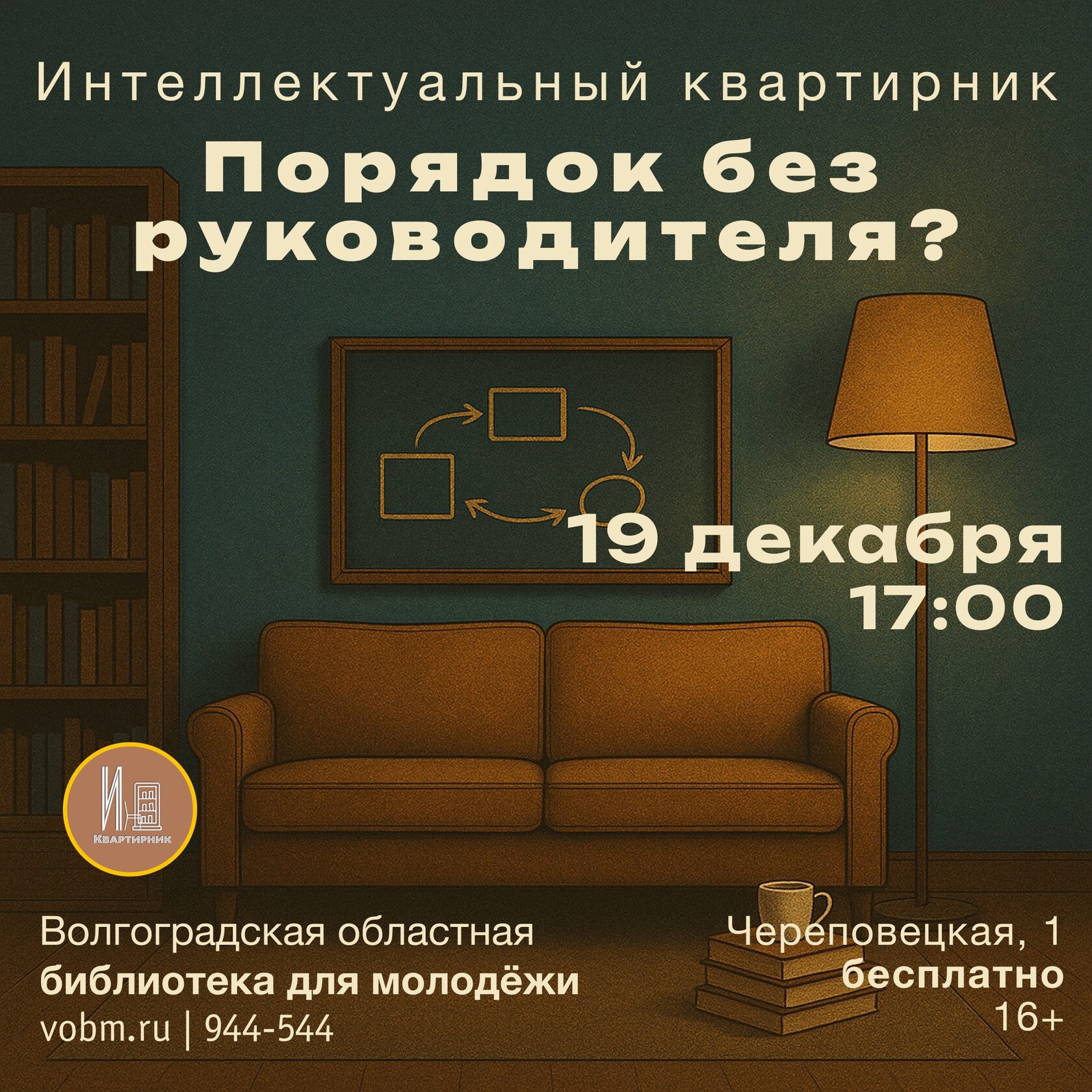 О возможностях порядка без подчинения мы поговорим в рамках встречи "Порядок без руководителя?", которая состоится 19 декабря в 17:00 в в Волгоградской областной библиотеке для молодежи. Участников встречи ждут: