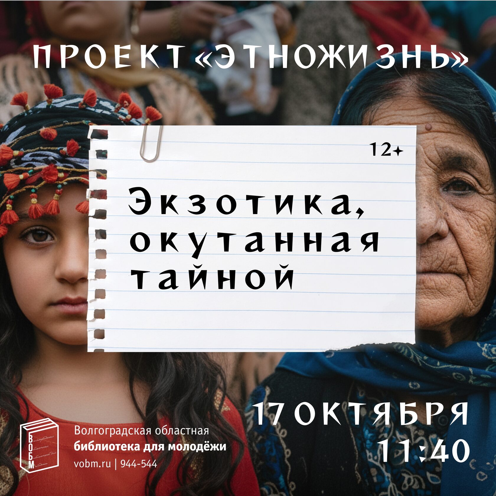 17 октября в 11:40 в Волгоградской областной библиотеке для молодежи в рамках Познавательного проекта «ЭТНОжизнь» состоится встреча «Экзотика, окутанная тайной».