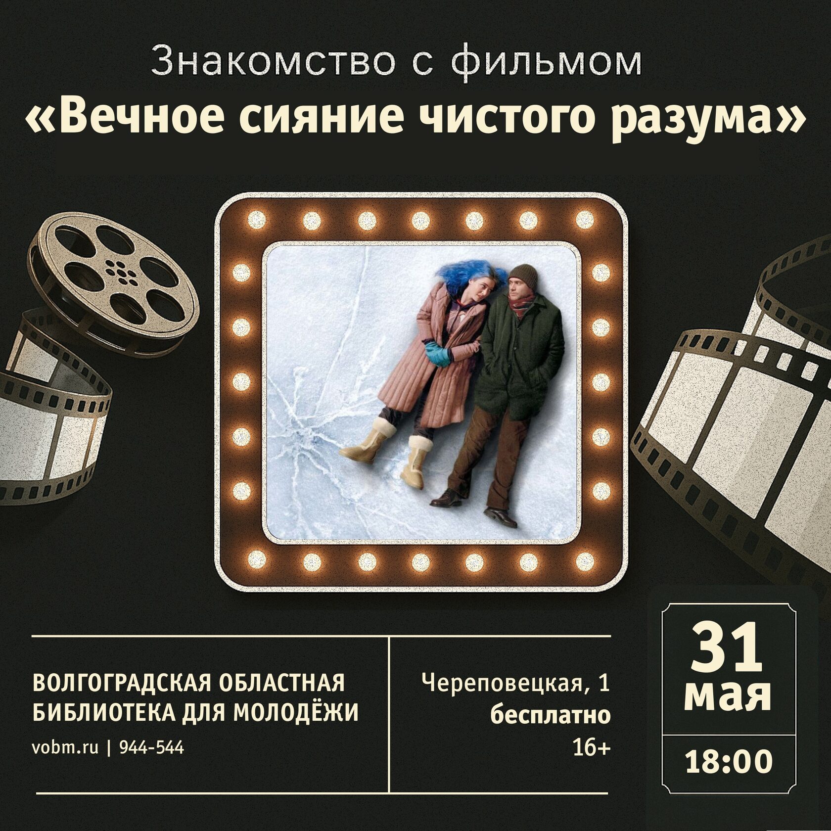 31 мая в 18:00 в Волгоградской областной библиотеке для молодежи в рамках проекта Зеркало сцены состоится знакомство с фильмом «Вечное сияние чистого разума» (2004)